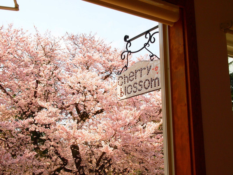 桜を眺めながらランチ。良いですよ〜(^O^) さくらのシフォンケーキと、紅茶専門店ルピシアさんのさくらんぼの香りがする紅茶もありますので、桜を満喫するのも良いかも♪