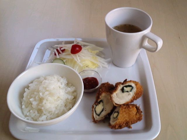 4月1日メニューは、ブロッコリーとオイルサーディンのパスタと、野菜サラダと、かぼちゃのスープと、フルーツです。
