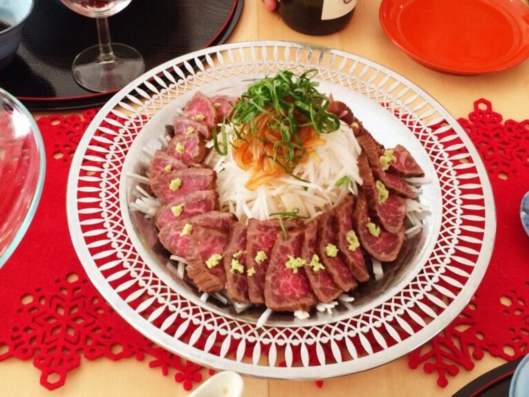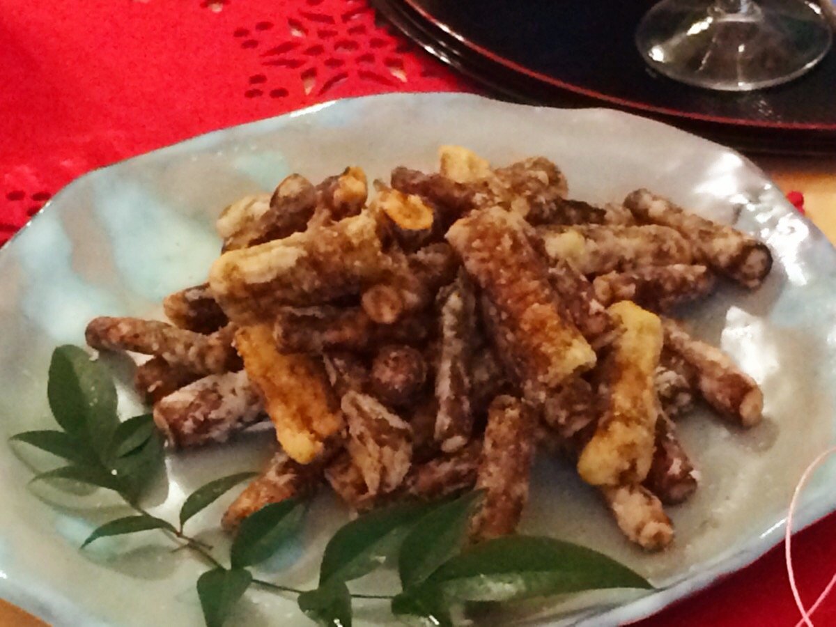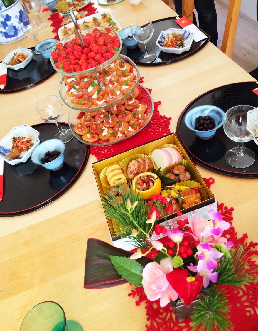2016年01月07日 我が家のおせち2016 NO2 定番のおせちメニューで、数の子、田作り、カナッペ、がめ煮、博多雑煮、黒豆、中華なます、ごぼう巻き、錦巻き、出し巻き卵、伊達巻、牛肉のたたき、もち米だんご、抹茶シフォンケーキ、杏仁豆腐のおせち料理に、今年は、ごぼうのから揚げが加わりました。 お酒も、いづつ生ワインが、我が家のお気に入りで毎年買ってます。 友人から頂いた獺祭も美味しかった! とにかく楽しい宴でした! さあ7日からお店を開けます! がんばりまーす(^○^)