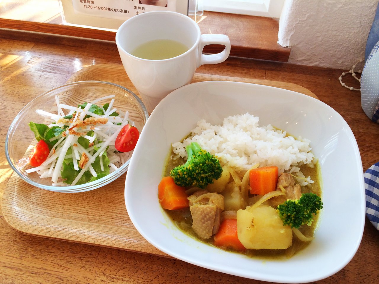 2016年01月08日 本日のメニュー・タイ風チキンカレー&抹茶シフォンケーキ 1月8日のおうちごはんは、タイ風チキンカレーと、野菜サラダと、オニオンスープと、フルーツです。 シフォンケーキは、抹茶シフォンケーキです。