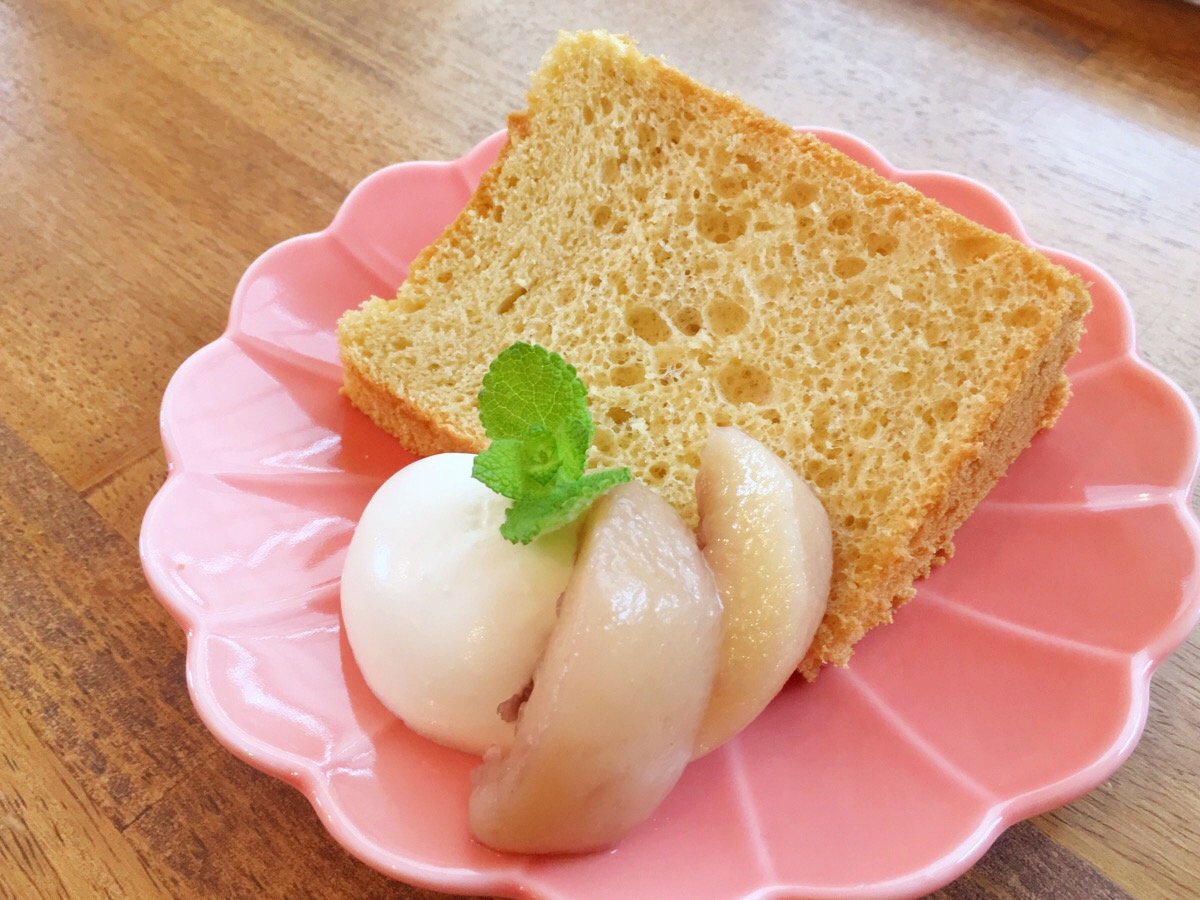2016年06月27日 桃のコンポートとヨーグルトクリームのシフォンサンド 桃のコンポートとヨーグルトクリームのシフォンサンドです。 桃を赤ワインとシロップで煮て、コンポートにしました。 さっぱりとした、ヨーグルトクリームと相性ぴったりです。 桃のジューシー感が美味しいです! お持ち帰りにいいですよ( ´ ▽ ` )ノ ご注文後に包装しますので、ちょっとお時間かかります。 お電話で、ご予約していただくと、早くお渡し出来ると思います。