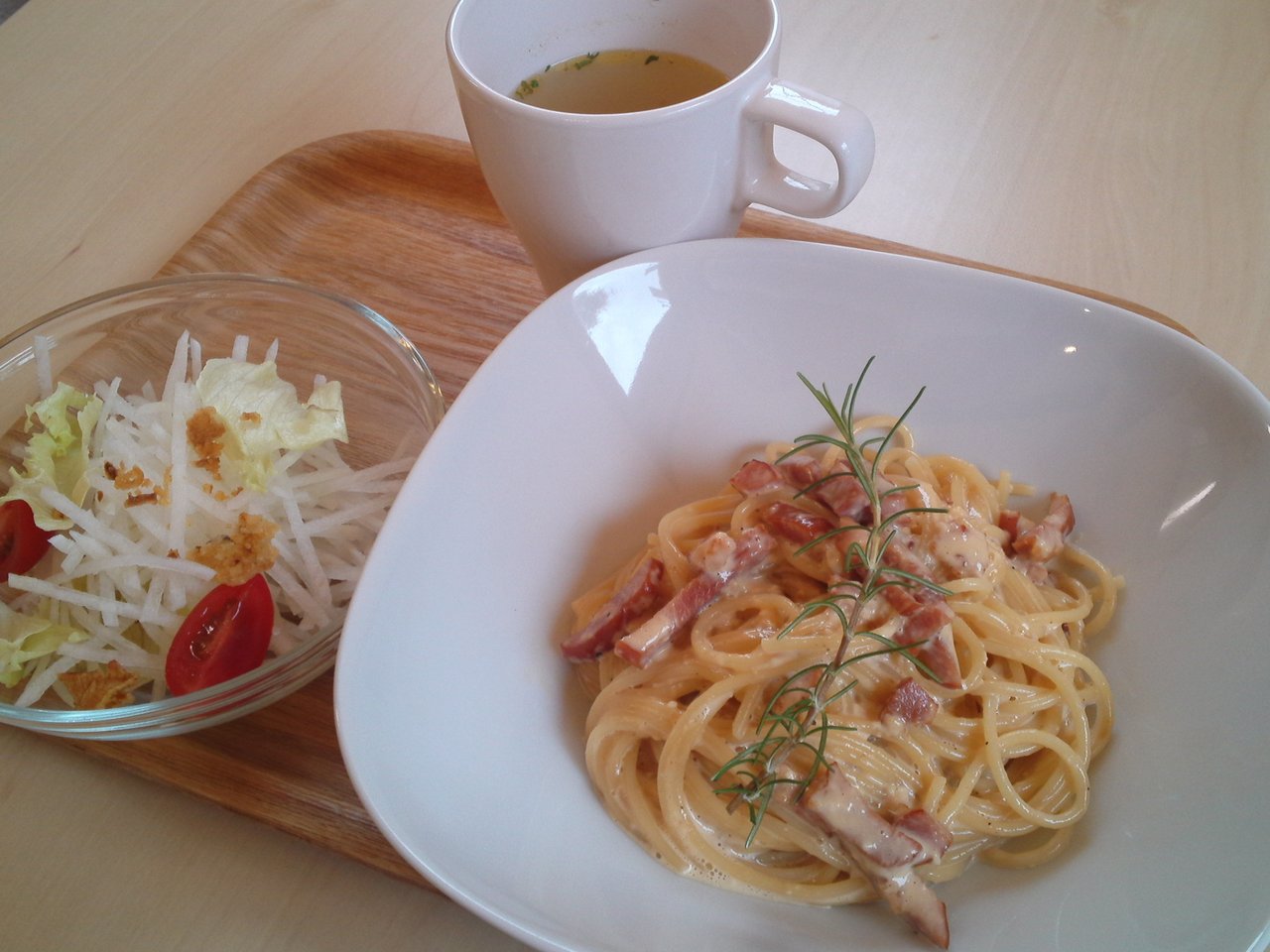 2017年05月24日 本日のメニュー・カルボナーラ&バラのシフォンケーキ 5月24日のおうちごはんは、カルボナーラと、野菜サラダと、じゃがいものスープです。 シフォンケーキは、バラのシフォンケーキです。