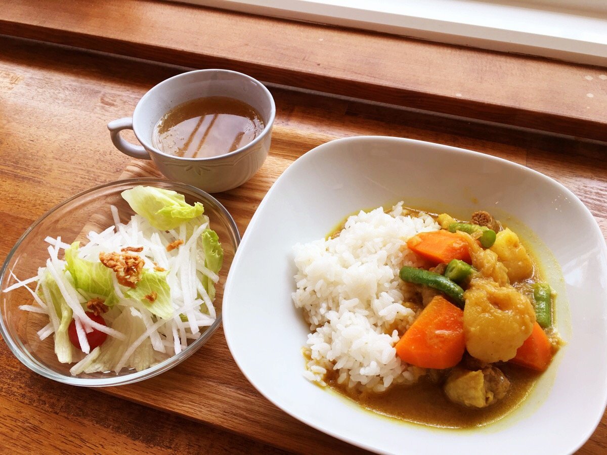 2017年05月25日 本日のメニュー・タイ風チキンカレーのバラのシフォンケーキ 5月25日のおうちごはんは、タイ風チキンカレーと、野菜サラダと、カブのスープと、自然米ご飯です。 シフォンケーキは、バラのシフォンケーキです。