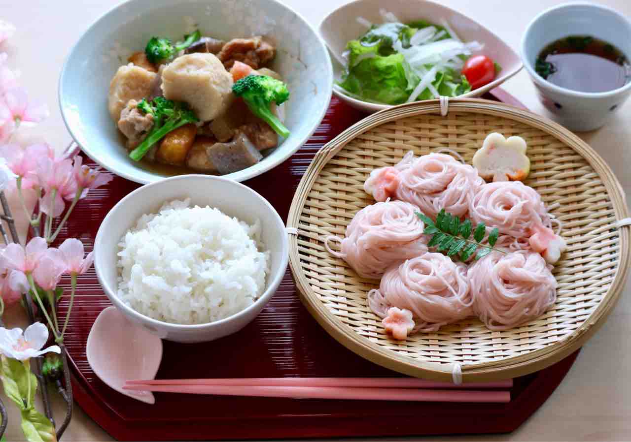 2019年04月11日 本日のメニュー・桜御膳&さくらシフォンケーキ&いちごアイスのシフォンパフェ 4月11日のおうちごはんは、桜御膳で、さくらそうめん、がめ煮、野菜サラダ、自然米ごはんです。シフォンケーキは、さくらシフォンケーキ。パフェは、いちごアイスのシフォンパフェです。シフォンフレンチトーストもあります。