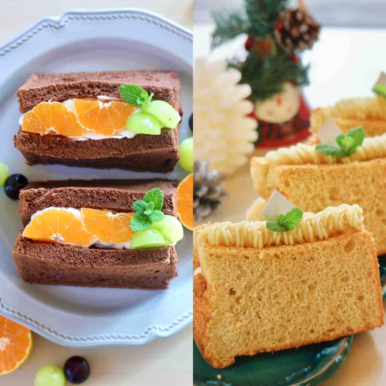 2020年12月03日 本日のスイーツ・チョコレートシフォンみかんサンド 12月3日のスイーツは、・チョコレートシフォンみかんサンド・さつまいもモンブランシフォン・まるごとみかんチョコシフォンロール・いちごクリームのシフォンサンド