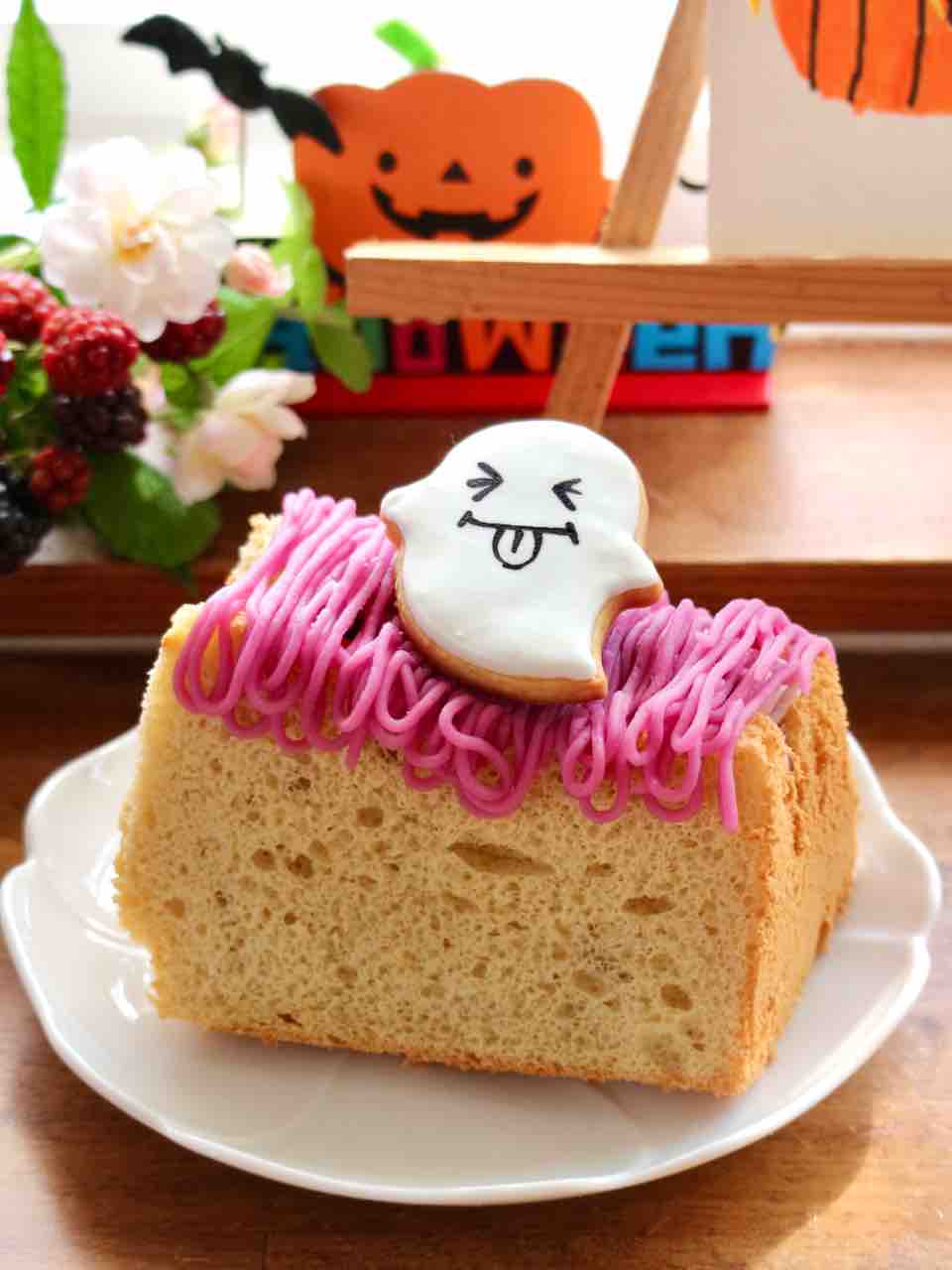 2021年10月28日 本日のスイーツ・むらさき芋のシフォンケーキ 10月28日のスイーツは、むらさき芋のシフォンケーキと、栗のシフォンケーキと、栗のシフォンパフェと、まるごとみかんチョコシフォンロールケーキです。