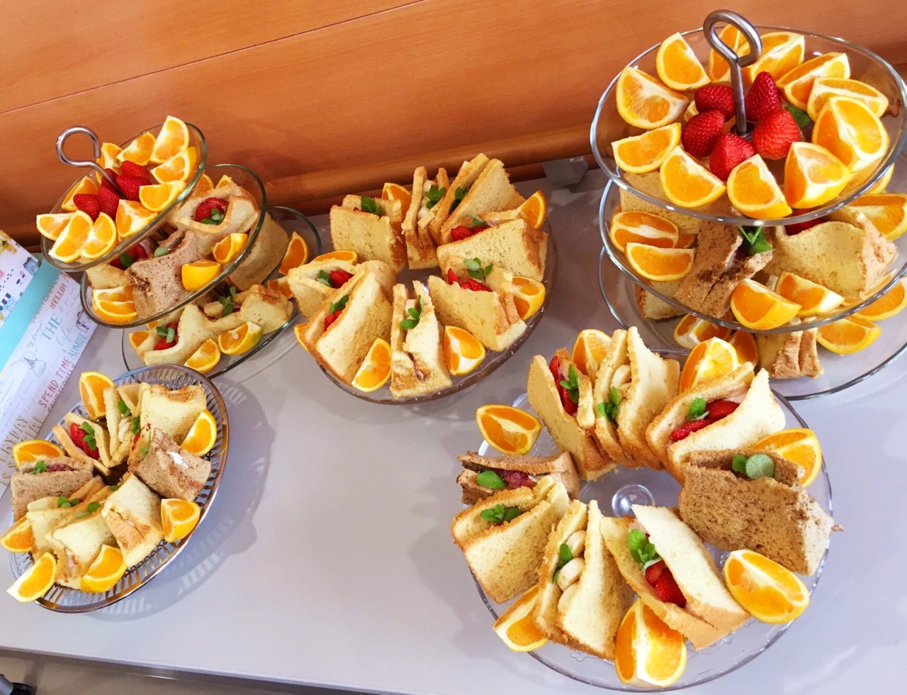 ケーキはプレーンのシフォンケーキにホワイトチョコと生クリームを合わせたチョコクリームでコーティングしてフルーツを添えました。