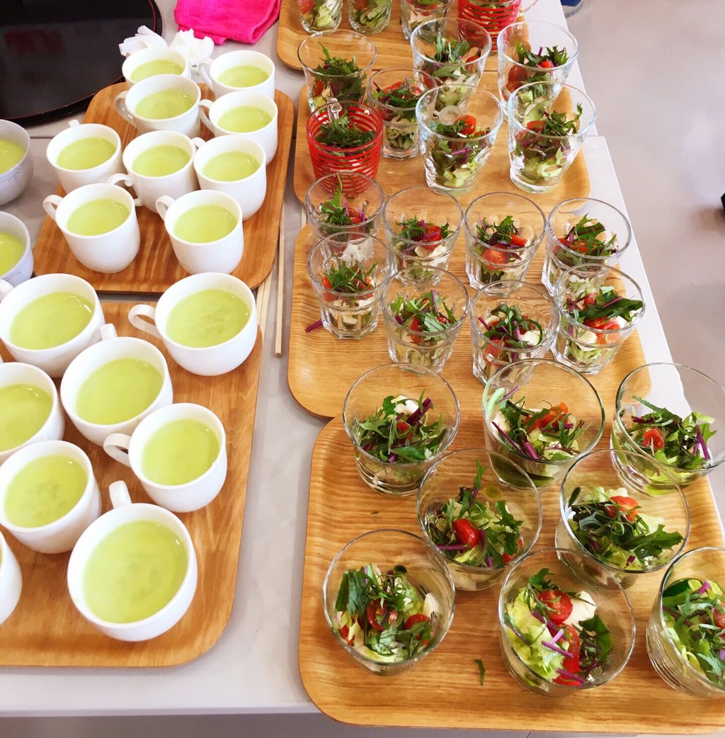 バタバタして、全部写真に写せてないのですが、メニューは、小松菜のスープ、豆腐と野菜のサラダ、写真がないですが、オードブルに箱根山麓牛のたたき、出し巻き卵、錦巻、さくらんぼ、鉢物は野菜の揚げ浸し、ごはんは、わさび葉包みごはん、そして、いちごクリームのシフォンケーキと、チョコクリームのシフォンケーキと、バラのシフォンケーキです。